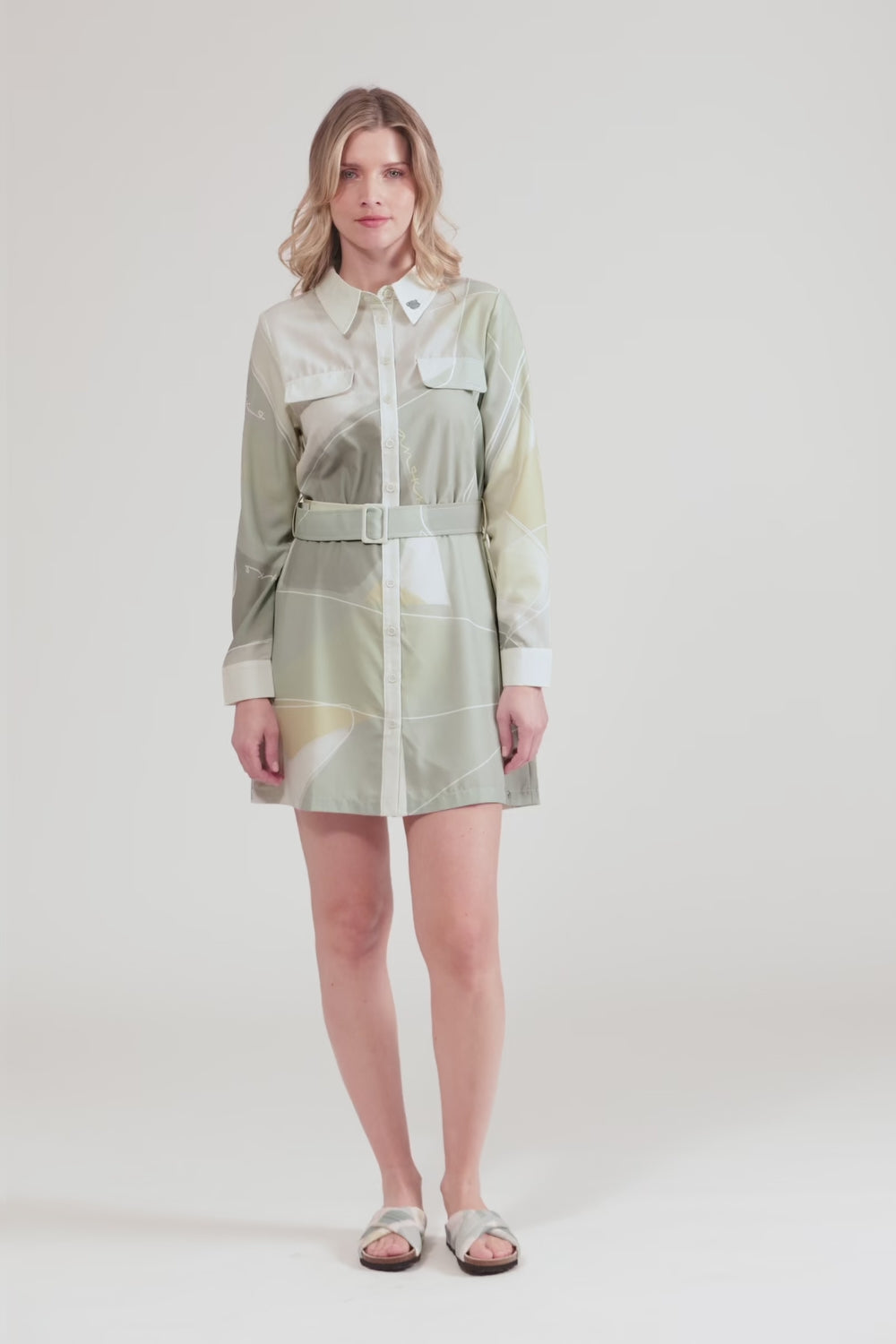 Stil und Komfort in einem einzigen Kleidungsstück. Dieses langärmlige Kleid wird mit Knöpfen geschlossen, hat zwei Brusttaschen und wird mit einem Gürtel in der Taille gebunden, um deine Silhouette mit einem lässigen und eleganten Touch zu betonen. Vielseitig und zeitlos, ist es perfekt für den Alltag oder um deinen Look mit einer ungezwungenen Note aufzuwerten.