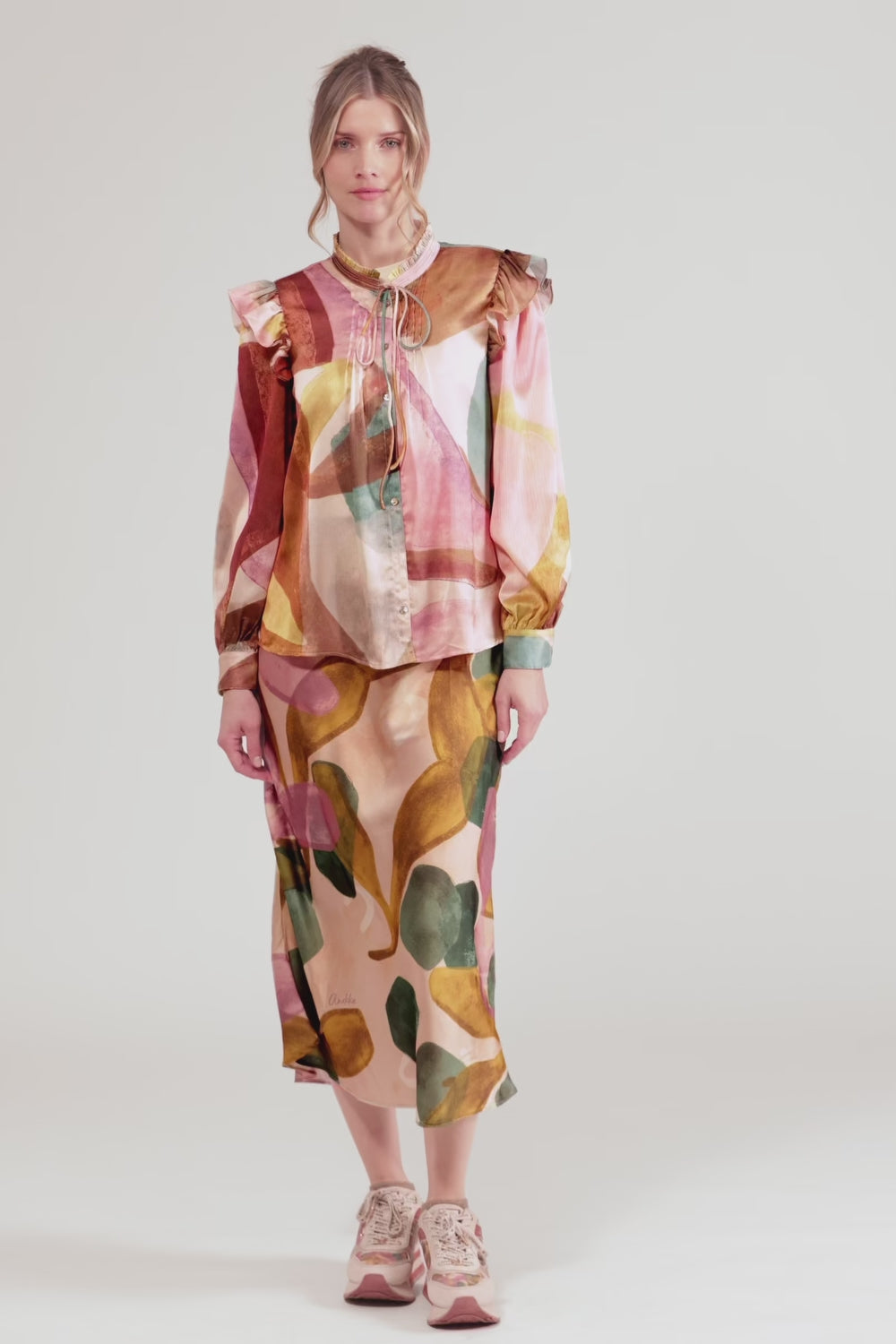 Dieser Rock aus der Bloom-Kollektion ist eine Ode an die Wandlungsfähigkeit. Sein abstraktes Blumenmuster in einer Palette aus Erdtönen und neutralen Farben spiegelt den Prozess des Aufblühens wider: zart, kraftvoll und einzigartig. Mit seinem fließenden, vorteilhaften Design passt er sich sanft jeder Bewegung an und verleiht deinem Look eine kunstvolle, feminine Note. Kombiniere ihn mit einfarbigen Kleidungsstücken, um ihn in den Mittelpunkt zu stellen, oder kreiere ein poetisches Ensemble mit anderen Kleidungsstücken der Kollektion. Denn jeder Tag ist eine Gelegenheit, zu erblühen. Und dieser Rock ist deine Art, dies zum Ausdruck zu bringen.